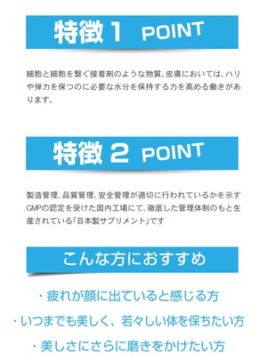そして、みずみずしさを保つためのヒアルロン酸やセラミドも配合していますので、日々の美容と健康のためにぜひお飲み下さい。