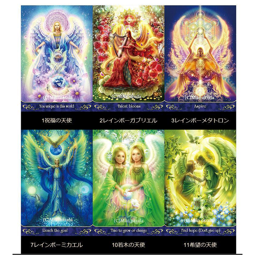 このカードの特徴は、画家・奥田みきが天使から受け取った「メッセージ」と「ビジョン」を交互に織り交ぜながら創ったことです。