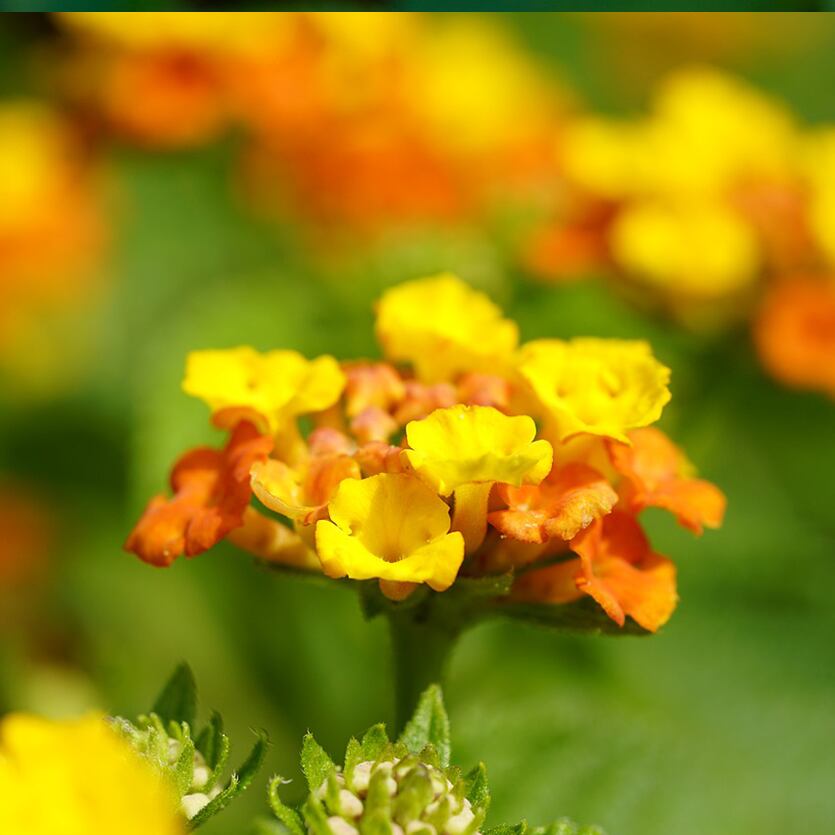 ランタナの和名は「七変化」。名前の通り、蕾みから開花まで、花の色が変化していくからです。
